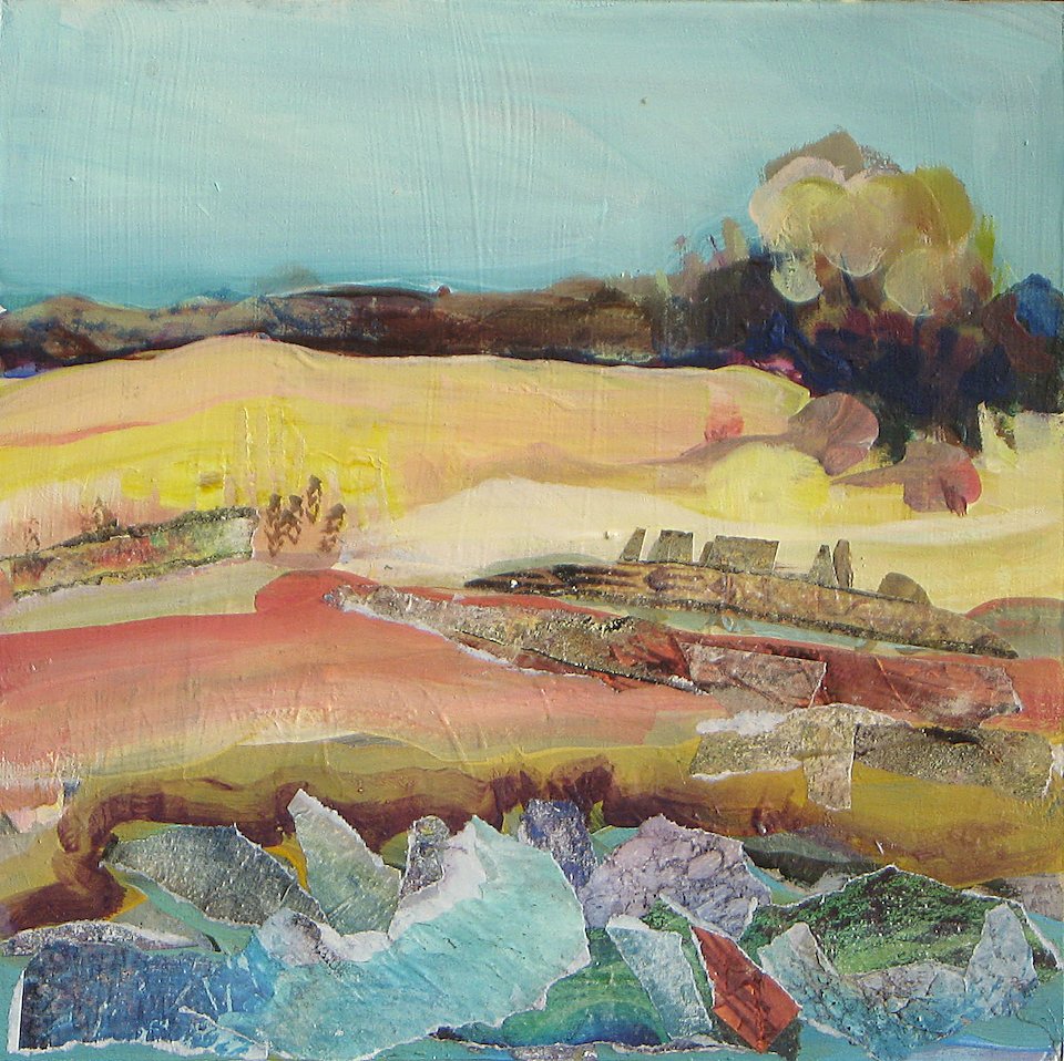 Beach, mixed media on board, 10 x 10 in