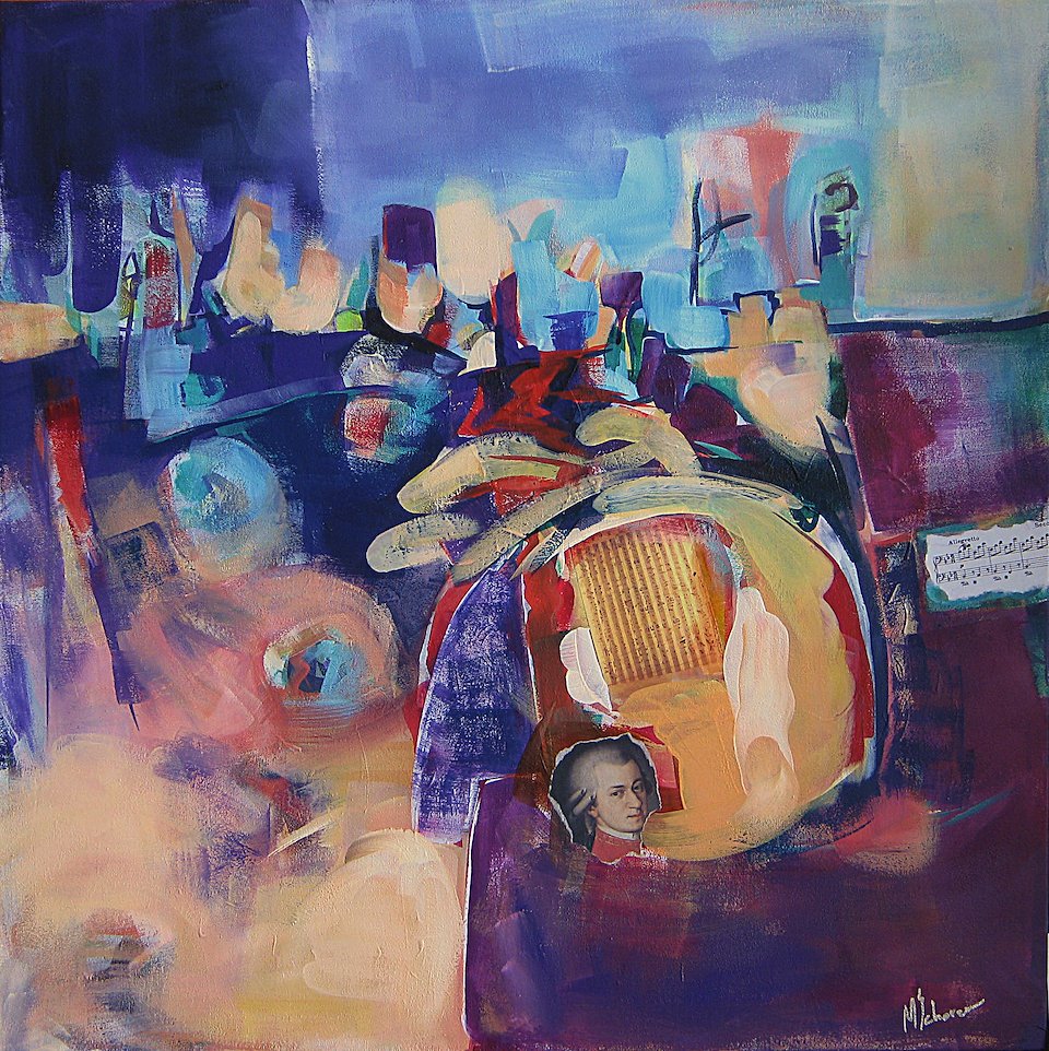 Mozart on the Square, mixed media on canvas, 30 x 30 in