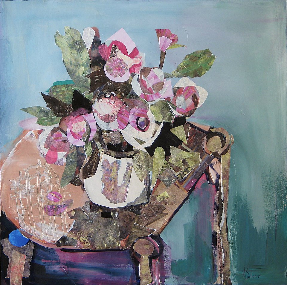 Cheryl’s Roses, mixed media on board, 20 x 20 in